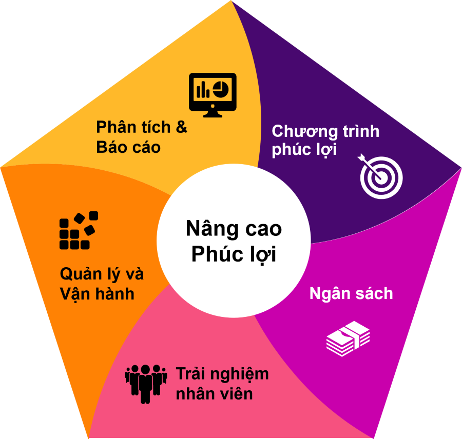 • Quản lý và vận hành phúc lợi: Nâng cao tính hiệu quả nguồn lực bên trong và bên ngoài, áp dụng giải pháp công nghệ để vận hành tối ưu